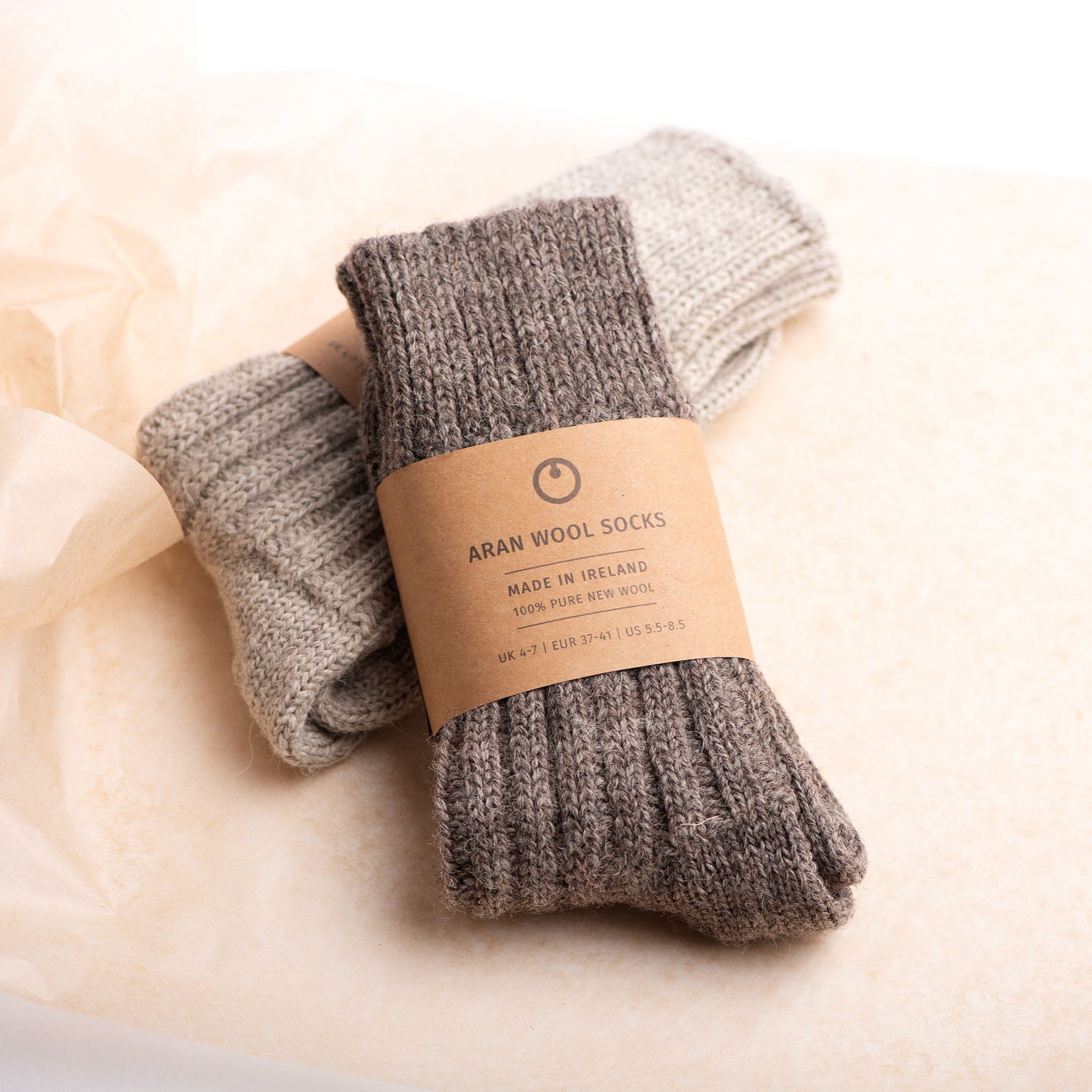 Thick wool socks made with love in Ireland from 100% pure new unbleached & undyed Jacob sheep wool.
