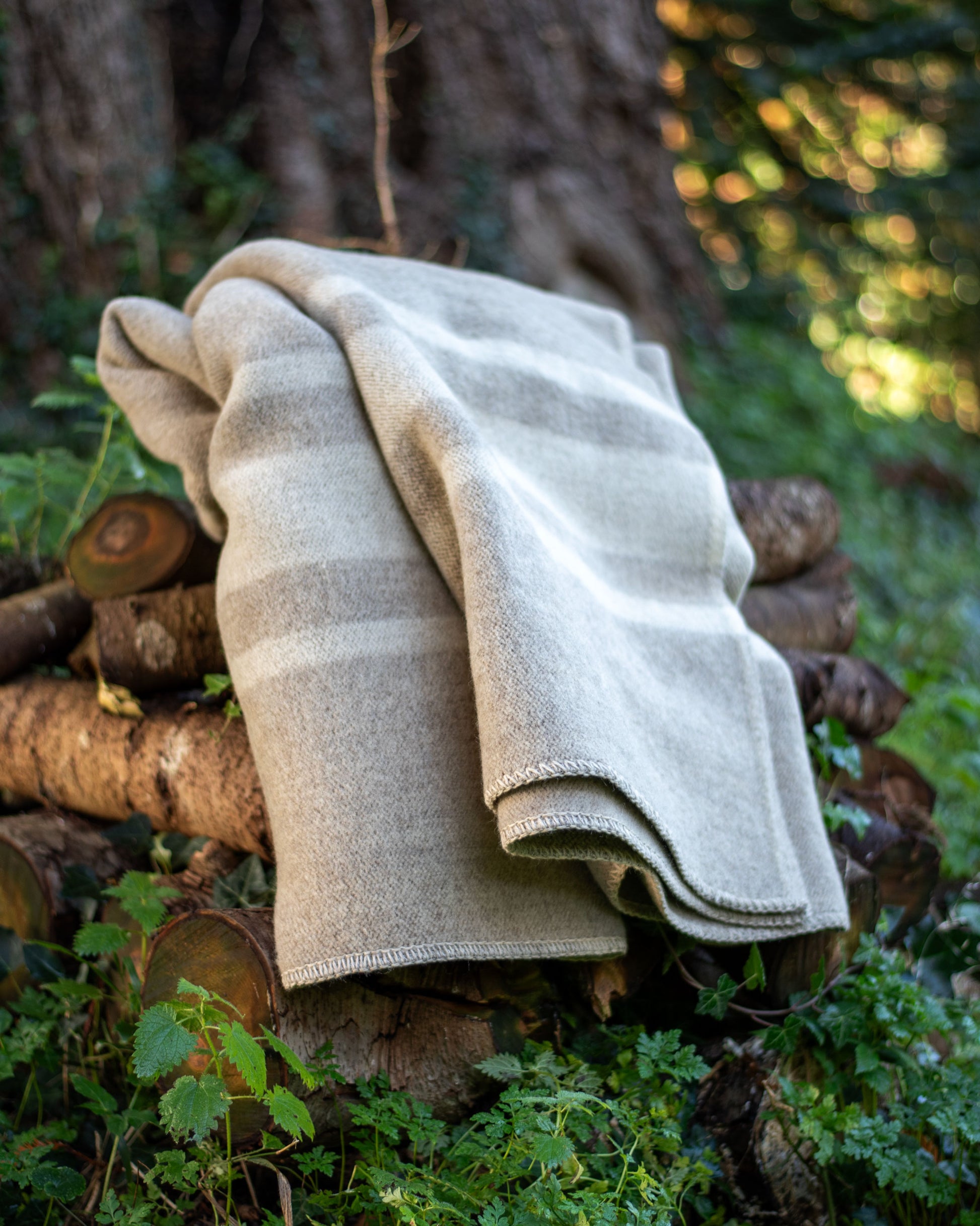 100% Wool Heavyweight Blanket - Natural Beige/White Stripes